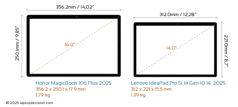 USBBeide MagicBook X16 Plus 2025 und IdeaPad Pro 5i 14 Gen 10 14 2025 verfügen über 2x USB 3.2 USB-A-Ports.Beide MagicBook X16 Plus 2025 und IdeaPad Pro 5i 14 Gen 10 14 2025 verfügen über 2x USB 4.0 USB-Type-C-Ports.