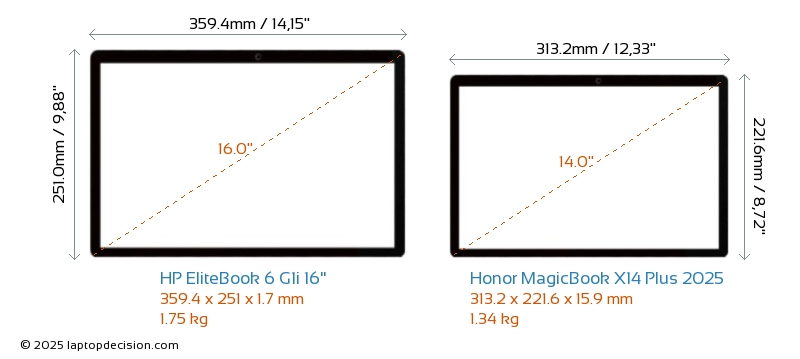 AudioanschlussBeide, EliteBook 6 G1i 16" und MagicBook X14 Plus 2025, sind mit einem 3,5-mm-Audioanschluss ausgestattet, der eine nahtlose Verbindung zu Kopfhörern und Lautsprechern ermöglicht.