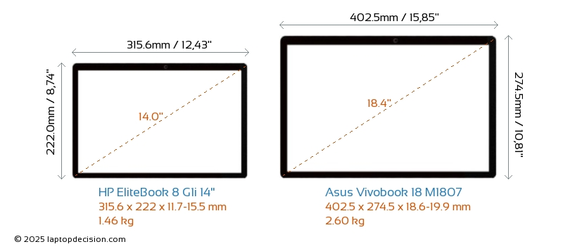 HDMIBeide, EliteBook 8 G1i 14" und Vivobook 18 M1807, verfügen über einen HDMI-Port (1x HDMI 2.1) zum Anschluss an externe Monitore.