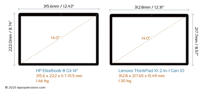 USBBeide EliteBook 8 G1i 14" und ThinkPad X1 2-in-1 Gen 10 verfügen über 2x USB 3.2 USB-A-Ports.Beide EliteBook 8 G1i 14" und ThinkPad X1 2-in-1 Gen 10 verfügen über 2x USB 4.0 USB-Type-C-Ports.