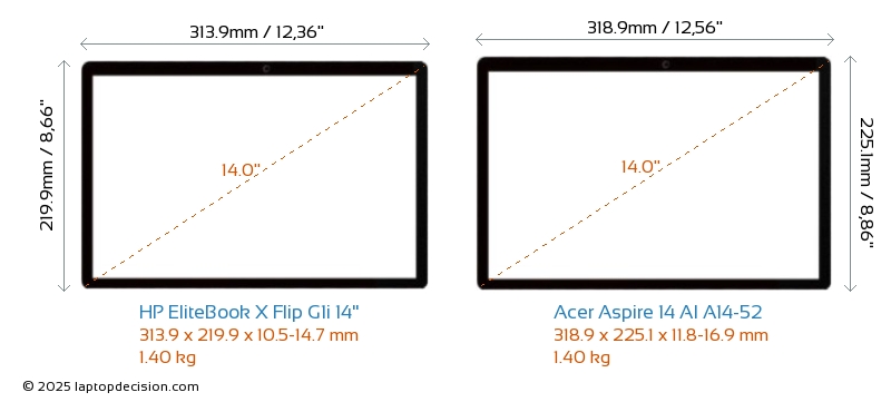 HDMIBeide, EliteBook X Flip G1i 14" und Aspire 14 AI A14-52, verfügen über einen HDMI-Port (1x HDMI 2.1) zum Anschluss an externe Monitore.