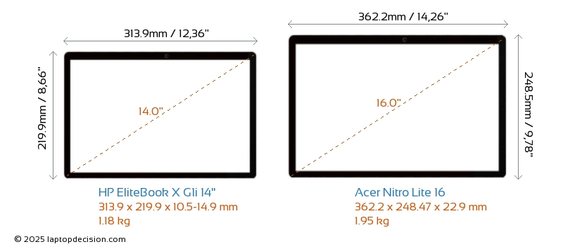 Wifi EliteBook X G1i 14" bietet einen fortschrittlicheren Wi-Fi-Standard v7, was schnellere und zuverlässigere drahtlose Verbindungen im Vergleich zu Nitro Lite 16 (v6) ermöglicht.