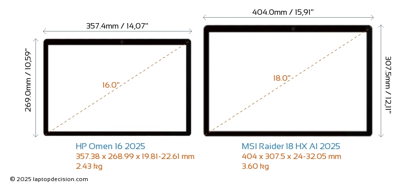 HDMIBeide, Omen 16 2025 und Raider 18 HX AI 2025, verfügen über einen HDMI-Port (1x HDMI 2.1) zum Anschluss an externe Monitore.