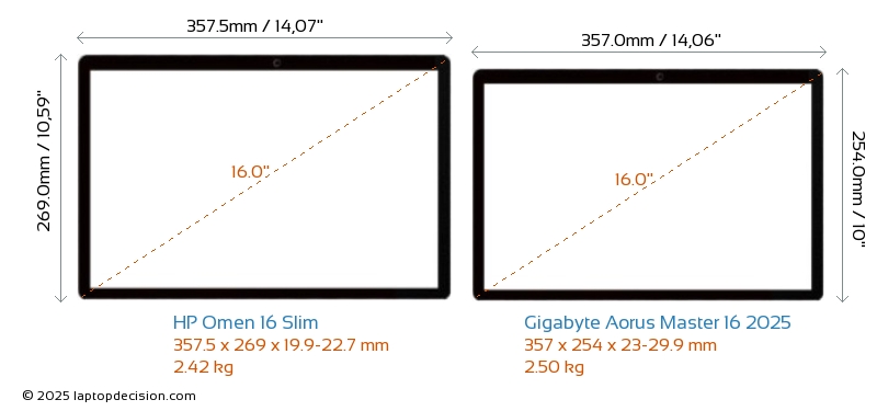 HDMIBeide, Omen 16 Slim und Aorus Master 16 2025, verfügen über einen HDMI-Port (1x HDMI 2.1) zum Anschluss an externe Monitore.