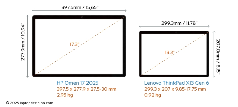 HDMIBeide, Omen 17 2025 und ThinkPad X13 Gen 6, verfügen über einen HDMI-Port (1x HDMI 2.1) zum Anschluss an externe Monitore.