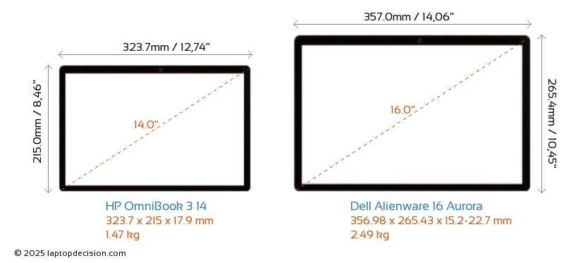 HDMIBeide, OmniBook 3 14 und Alienware 16 Aurora, verfügen über einen HDMI-Port. OmniBook 3 14 bietet 1x HDMI 1.4, während Alienware 16 Aurora 1x HDMI 2.1 bietet.
