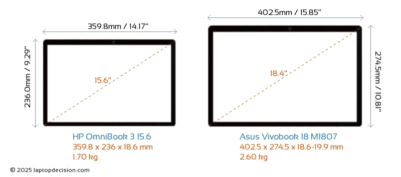 USBBeide OmniBook 3 15.6 und Vivobook 18 M1807 verfügen über 2x USB 3.2 USB-A-Ports.Beide OmniBook 3 15.6 und Vivobook 18 M1807 haben USB-Type-C-Ports. OmniBook 3 15.6 hat 1x USB 3.2 USB Type-C-Ports, während Vivobook 18 M1807 2x USB 4.0 USB Type-C-Ports hat.