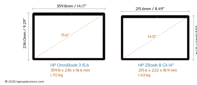 HDMIBeide, OmniBook 3 15.6 und ZBook 8 G1i 14", verfügen über einen HDMI-Port. OmniBook 3 15.6 bietet 1x HDMI 1.4, während ZBook 8 G1i 14" 1x HDMI 2.1 bietet.