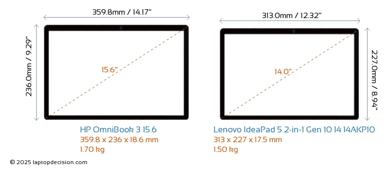 USBBeide OmniBook 3 15.6 und IdeaPad 5 2-in-1 Gen 10 14 14AKP10 verfügen über 2x USB 3.2 USB-A-Ports.Beide OmniBook 3 15.6 und IdeaPad 5 2-in-1 Gen 10 14 14AKP10 haben USB-Type-C-Ports. OmniBook 3 15.6 hat 1x USB 3.2 USB Type-C-Ports, während IdeaPad 5 2-in-1 Gen 10 14 14AKP10 2x USB 4.0 USB Type-C-Ports hat.