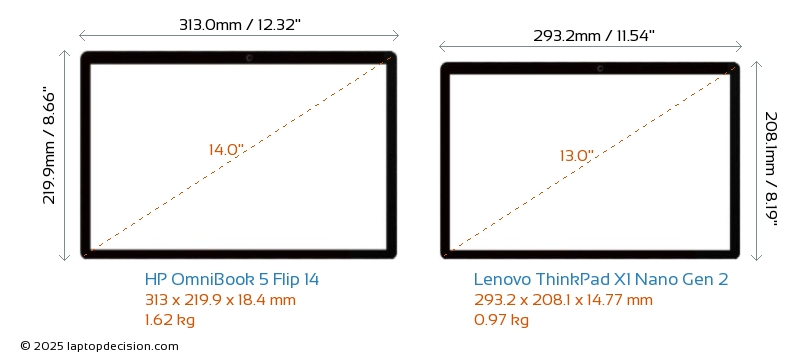 HDMI OmniBook 5 Flip 14 verfügt über einen HDMI-Port (1x HDMI 2.1) zum Anschluss an externe Monitore. ThinkPad X1 Nano Gen 2 hat keinen HDMI-Port.