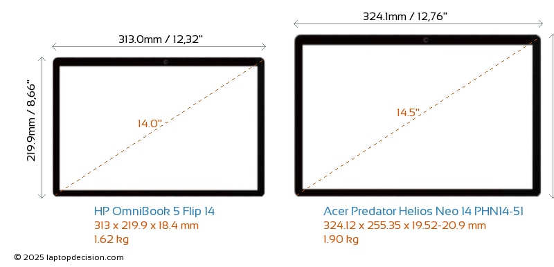 HDMIBeide, OmniBook 5 Flip 14 und Predator Helios Neo 14 PHN14-51, verfügen über einen HDMI-Port (1x HDMI 2.1) zum Anschluss an externe Monitore.