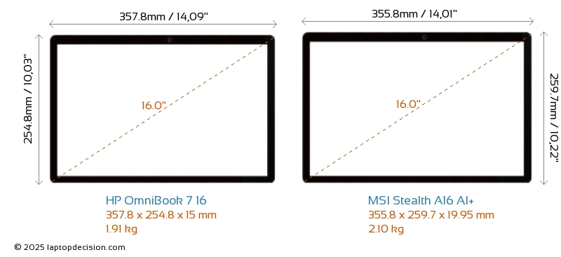 HDMIBeide, OmniBook 7 16 und Stealth A16 AI+, verfügen über einen HDMI-Port (1x HDMI 2.1) zum Anschluss an externe Monitore.