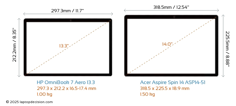 USBBeide OmniBook 7 Aero 13.3 und Aspire Spin 14 ASP14-51 verfügen über 2x USB 3.2 USB-A-Ports.Beide OmniBook 7 Aero 13.3 und Aspire Spin 14 ASP14-51 verfügen über 2x USB 4.0 USB-Type-C-Ports.