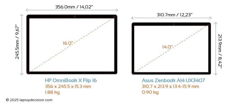 HDMIBeide, OmniBook X Flip 16 und Zenbook A14 UX3407, verfügen über einen HDMI-Port (1x HDMI 2.1) zum Anschluss an externe Monitore.