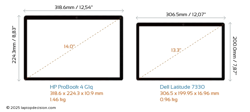 HDMIBeide, ProBook 4 G1q und Latitude 7330, verfügen über einen HDMI-Port. ProBook 4 G1q bietet 1x HDMI 2.1, während Latitude 7330 1x HDMI 2.0 bietet.