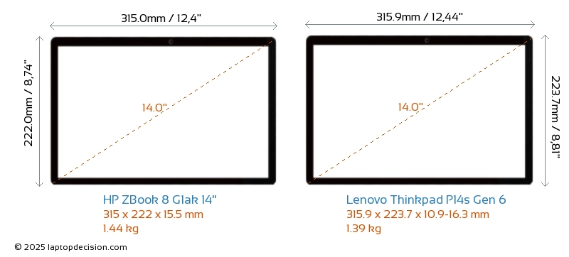 ThunderboltBeide, ZBook 8 G1ak 14" und Thinkpad P14s Gen 6, sind mit Thunderbolt 4-Ports ausgestattet.
