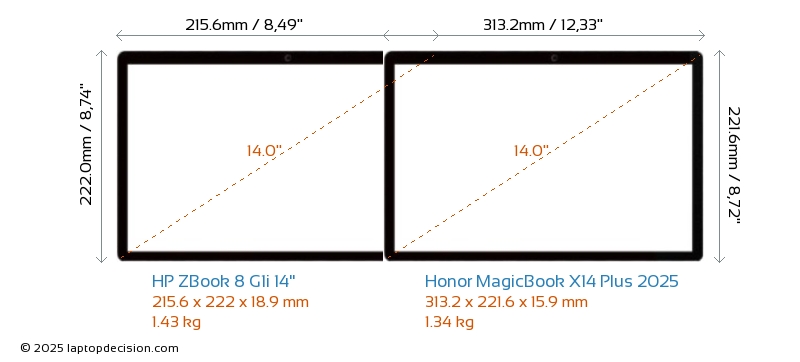 AudioanschlussBeide, ZBook 8 G1i 14" und MagicBook X14 Plus 2025, sind mit einem 3,5-mm-Audioanschluss ausgestattet, der eine nahtlose Verbindung zu Kopfhörern und Lautsprechern ermöglicht.
