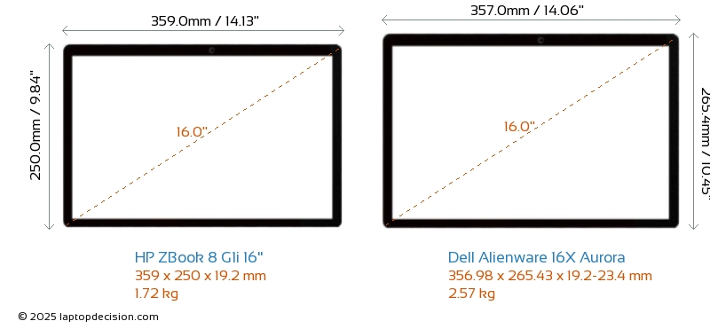 HDMIBeide, ZBook 8 G1i 16" und Alienware 16X Aurora, verfügen über einen HDMI-Port (1x HDMI 2.1) zum Anschluss an externe Monitore.