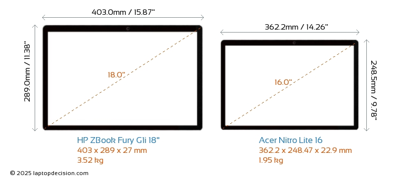 HDMIBeide, ZBook Fury G1i 18" und Nitro Lite 16, verfügen über einen HDMI-Port (1x HDMI 2.1) zum Anschluss an externe Monitore.