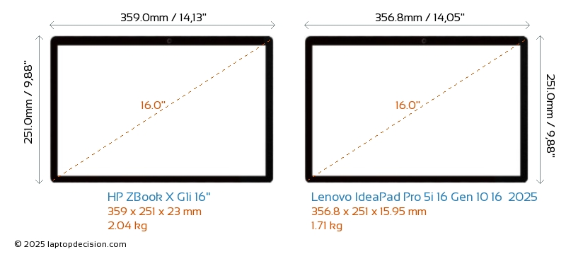 HDMIBeide, ZBook X G1i 16" und IdeaPad Pro 5i 16 Gen 10 16 2025, verfügen über einen HDMI-Port (1x HDMI 2.1) zum Anschluss an externe Monitore.