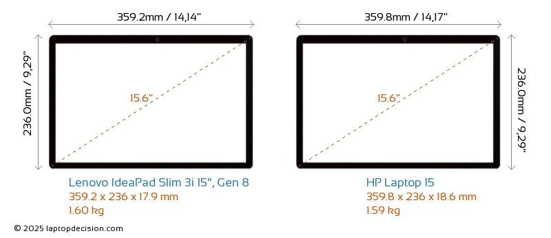 USBBeide IdeaPad Slim 3i 15", Gen 8 und Laptop 15 verfügen über 2x USB 3.2 USB-A-Ports.Beide IdeaPad Slim 3i 15", Gen 8 und Laptop 15 verfügen über 1x USB 3.2 USB-Type-C-Ports.