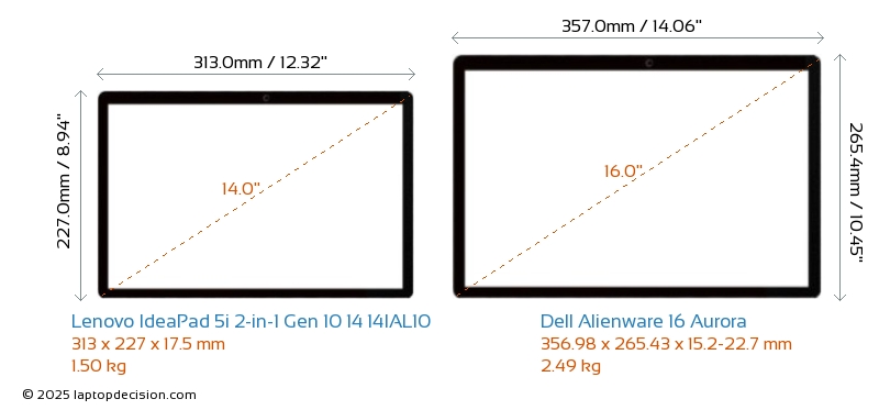 USBBeide IdeaPad 5i 2-in-1 Gen 10 14 14IAL10 und Alienware 16 Aurora verfügen über 2x USB 3.2 USB-A-Ports.Beide IdeaPad 5i 2-in-1 Gen 10 14 14IAL10 und Alienware 16 Aurora verfügen über 2x USB 4.0 USB-Type-C-Ports.