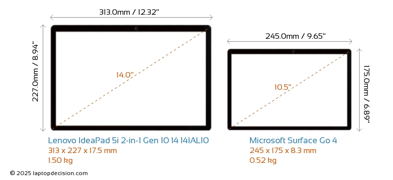 HDMI IdeaPad 5i 2-in-1 Gen 10 14 14IAL10 verfügt über einen HDMI-Port (1x HDMI 1.4) zum Anschluss an externe Monitore. Surface Go 4 hat keinen HDMI-Port.