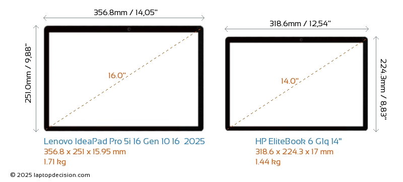 HDMIBeide, IdeaPad Pro 5i 16 Gen 10 16 2025 und EliteBook 6 G1q 14", verfügen über einen HDMI-Port (1x HDMI 2.1) zum Anschluss an externe Monitore.
