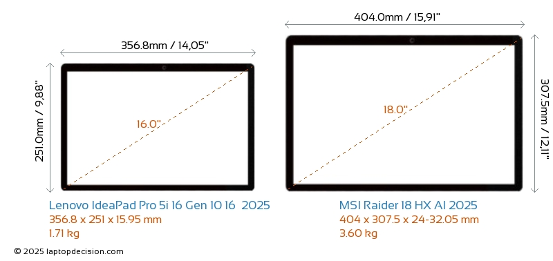 ThunderboltBeide, IdeaPad Pro 5i 16 Gen 10 16 2025 und Raider 18 HX AI 2025, verfügen über Thunderbolt-Ports. IdeaPad Pro 5i 16 Gen 10 16 2025 hat Thunderbolt 4, während Raider 18 HX AI 2025 Thunderbolt 5 hat.