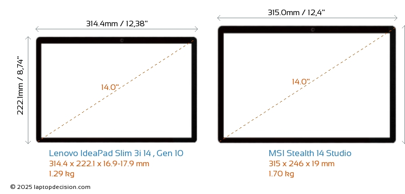 Thunderbolt Stealth 14 Studio ist mit einem Thunderbolt 4-Port ausgestattet. IdeaPad Slim 3i 14 , Gen 10 hat keinen Thunderbolt-Port.