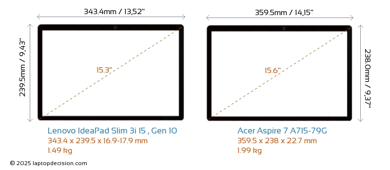 USBBeide IdeaPad Slim 3i 15 , Gen 10 und Aspire 7 A715-79G verfügen über 2x USB 3.2 USB-A-Ports.Beide IdeaPad Slim 3i 15 , Gen 10 und Aspire 7 A715-79G haben USB-Type-C-Ports. IdeaPad Slim 3i 15 , Gen 10 hat 1x USB 3.2 USB Type-C-Ports, während Aspire 7 A715-79G 2x USB 3.2 USB Type-C-Ports hat.