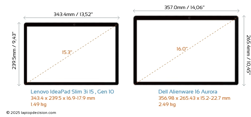 AudioanschlussBeide, IdeaPad Slim 3i 15 , Gen 10 und Alienware 16 Aurora, sind mit einem 3,5-mm-Audioanschluss ausgestattet, der eine nahtlose Verbindung zu Kopfhörern und Lautsprechern ermöglicht.