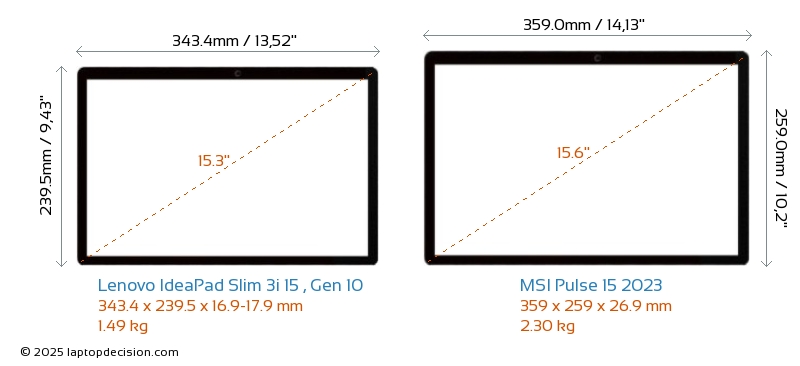 HDMIBeide, IdeaPad Slim 3i 15 , Gen 10 und Pulse 15 2023, verfügen über einen HDMI-Port. IdeaPad Slim 3i 15 , Gen 10 bietet 1x HDMI 1.4, während Pulse 15 2023 1x HDMI 2.1 bietet.