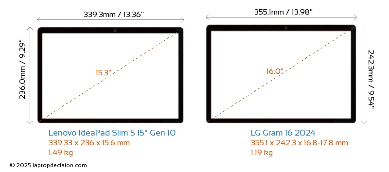 USBBeide IdeaPad Slim 5 15" Gen 10 und Gram 16 2024 verfügen über 2x USB 3.2 USB-A-Ports.Beide IdeaPad Slim 5 15" Gen 10 und Gram 16 2024 haben USB-Type-C-Ports. IdeaPad Slim 5 15" Gen 10 hat 2x USB 3.2 USB Type-C-Ports, während Gram 16 2024 2x USB 4.0 USB Type-C-Ports hat.