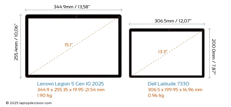 ThunderboltLatitude 7330 ist mit einem Thunderbolt 4-Port ausgestattet. Legion 5 Gen 10 2025 hat keinen Thunderbolt-Port.