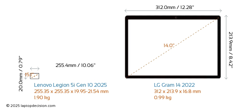 ThunderboltGram 14 2022 ist mit einem Thunderbolt 4-Port ausgestattet. Legion 5i Gen 10 2025 hat keinen Thunderbolt-Port.
