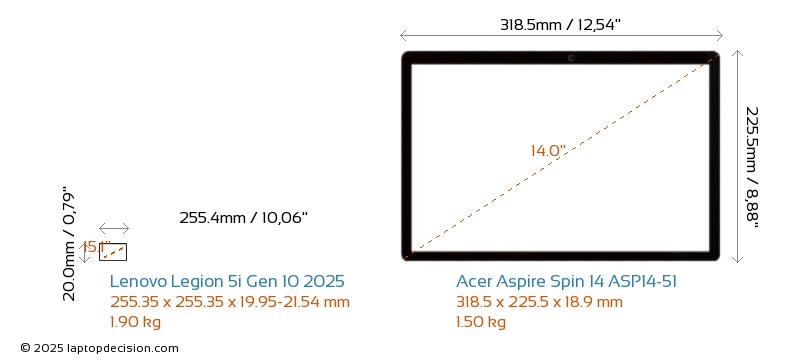 HDMIBeide, Legion 5i Gen 10 2025 und Aspire Spin 14 ASP14-51, verfügen über einen HDMI-Port (1x HDMI 2.1) zum Anschluss an externe Monitore.
