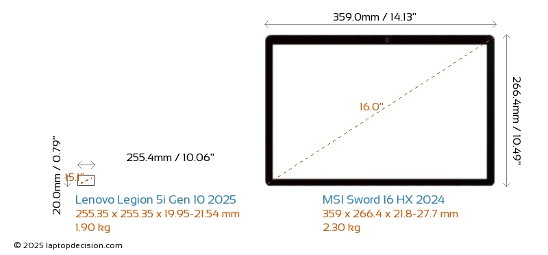 ThunderboltWeder Legion 5i Gen 10 2025 noch Sword 16 HX 2024 haben einen Thunderbolt-Port.