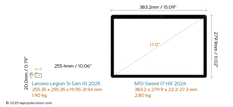 HDMIBeide, Legion 5i Gen 10 2025 und Sword 17 HX 2024, verfügen über einen HDMI-Port (1x HDMI 2.1) zum Anschluss an externe Monitore.