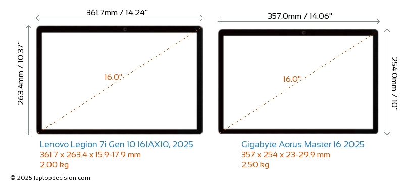 HDMIBeide, Legion 7i Gen 10 16IAX10, 2025 und Aorus Master 16 2025, verfügen über einen HDMI-Port (1x HDMI 2.1) zum Anschluss an externe Monitore.
