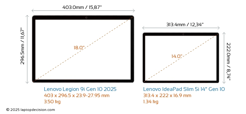 USBBeide Legion 9i Gen 10 2025 und IdeaPad Slim 5i 14" Gen 10 haben USB-A-Ports. Legion 9i Gen 10 2025 hat 3x USB 3.2 USB-A-Ports, während IdeaPad Slim 5i 14" Gen 10 2x USB 3.2 USB-A-Ports hat.Beide Legion 9i Gen 10 2025 und IdeaPad Slim 5i 14" Gen 10 haben USB-Type-C-Ports. Legion 9i Gen 10 2025 hat 3x USB 4.0 USB Type-C-Ports, während IdeaPad Slim 5i 14" Gen 10 2x USB 3.2 USB Type-C-Ports hat.