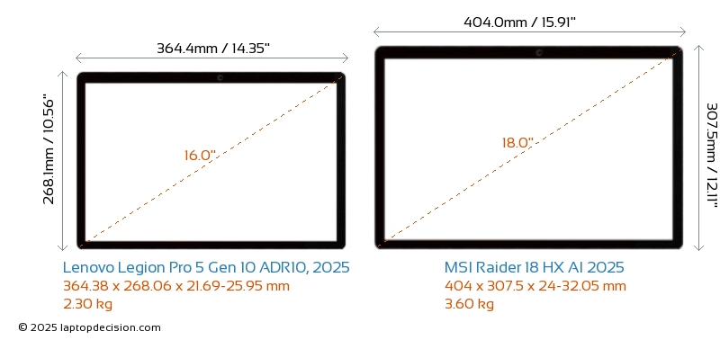 HDMIBeide, Legion Pro 5 Gen 10 ADR10, 2025 und Raider 18 HX AI 2025, verfügen über einen HDMI-Port (1x HDMI 2.1) zum Anschluss an externe Monitore.