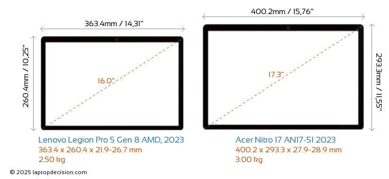HDMIBeide, Legion Pro 5 Gen 8 AMD, 2023 und Nitro 17 AN17-51 2023, verfügen über einen HDMI-Port (1x HDMI 2.1) zum Anschluss an externe Monitore.