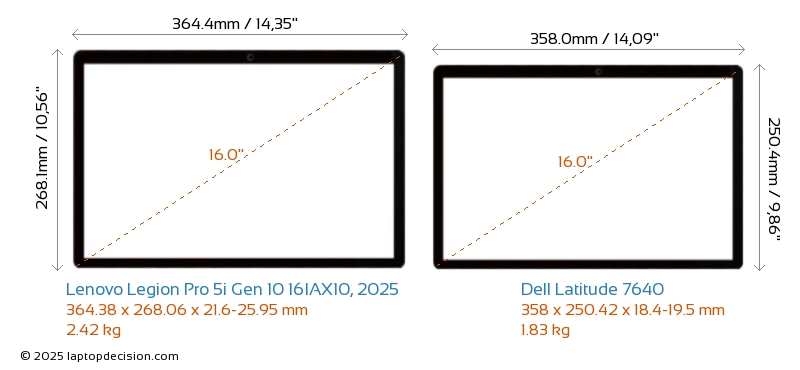 ThunderboltBeide, Legion Pro 5i Gen 10 16IAX10, 2025 und Latitude 7640, sind mit Thunderbolt 4-Ports ausgestattet.