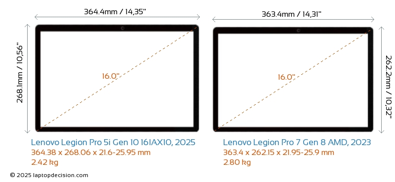 Thunderbolt Legion Pro 5i Gen 10 16IAX10, 2025 ist mit einem Thunderbolt 4-Port ausgestattet. Legion Pro 7 Gen 8 AMD, 2023 hat keinen Thunderbolt-Port.