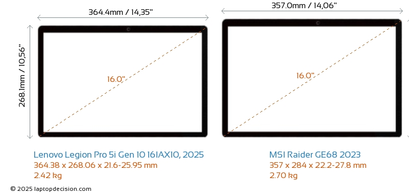 ThunderboltBeide, Legion Pro 5i Gen 10 16IAX10, 2025 und Raider GE68 2023, sind mit Thunderbolt 4-Ports ausgestattet.