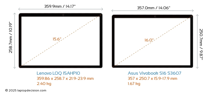 HDMIBeide, LOQ 15AHP10 und Vivobook S16 S3607, verfügen über einen HDMI-Port (1x HDMI 2.1) zum Anschluss an externe Monitore.