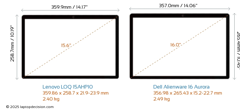 HDMIBeide, LOQ 15AHP10 und Alienware 16 Aurora, verfügen über einen HDMI-Port (1x HDMI 2.1) zum Anschluss an externe Monitore.