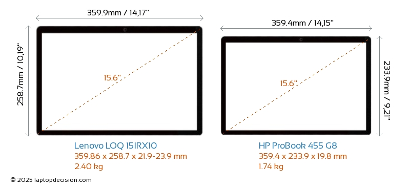 HDMIBeide, LOQ 15IRX10 und ProBook 455 G8, verfügen über einen HDMI-Port. LOQ 15IRX10 bietet 1x HDMI 2.1, während ProBook 455 G8 1x HDMI 1.4 bietet.