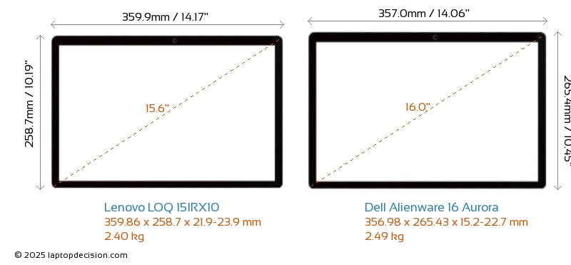 USBBeide LOQ 15IRX10 und Alienware 16 Aurora haben USB-A-Ports. LOQ 15IRX10 hat 3x USB 3.2 USB-A-Ports, während Alienware 16 Aurora 2x USB 3.2 USB-A-Ports hat.Beide LOQ 15IRX10 und Alienware 16 Aurora haben USB-Type-C-Ports. LOQ 15IRX10 hat 1x USB 3.2 USB Type-C-Ports, während Alienware 16 Aurora 2x USB 4.0 USB Type-C-Ports hat.